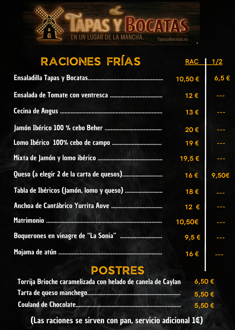 Raciones frías y Postres
